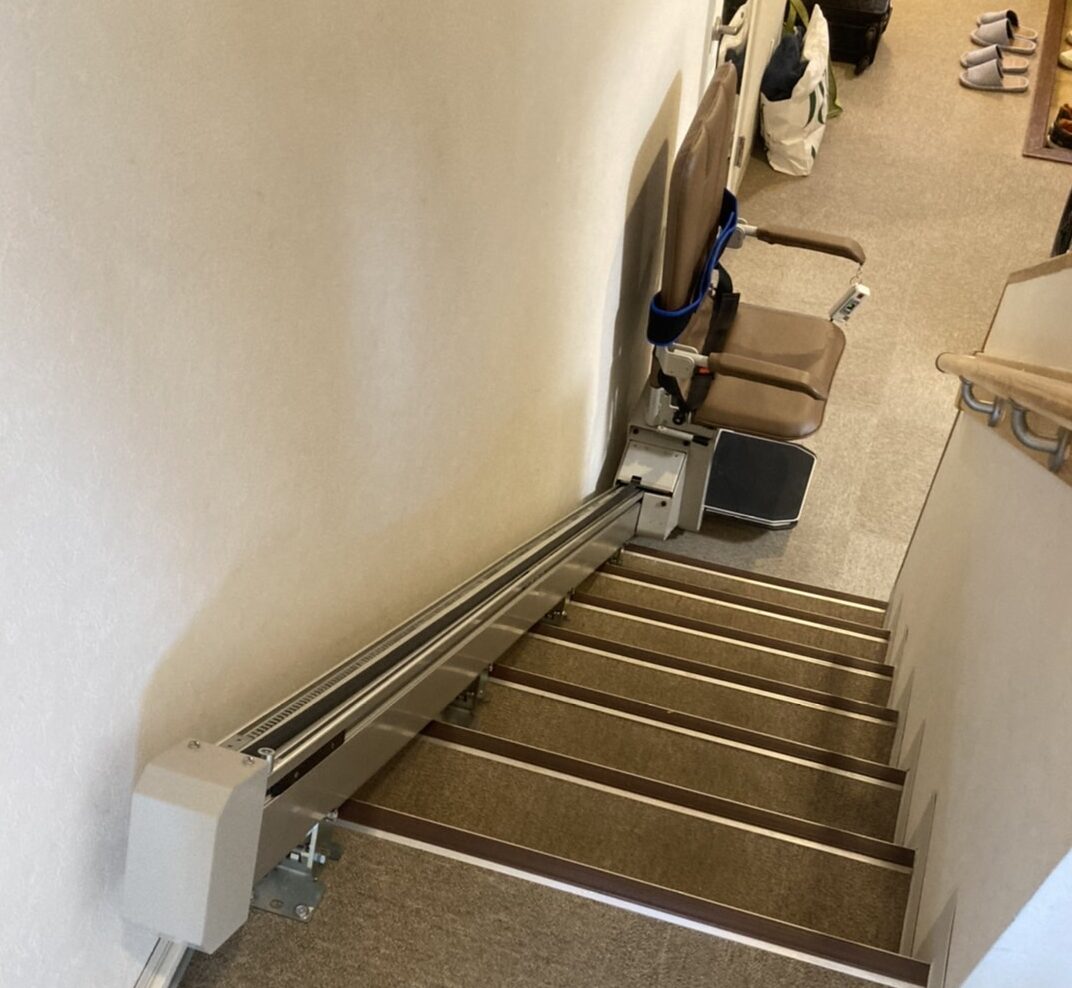 中古の階段昇降機の販売店スマイルケアが手掛けた、実際の設置事例をご紹介します。お客様のご自宅の階段形状やご要望に合わせて、最適な機種選定から施工まで、豊富な実績とノウハウでサポートしています。